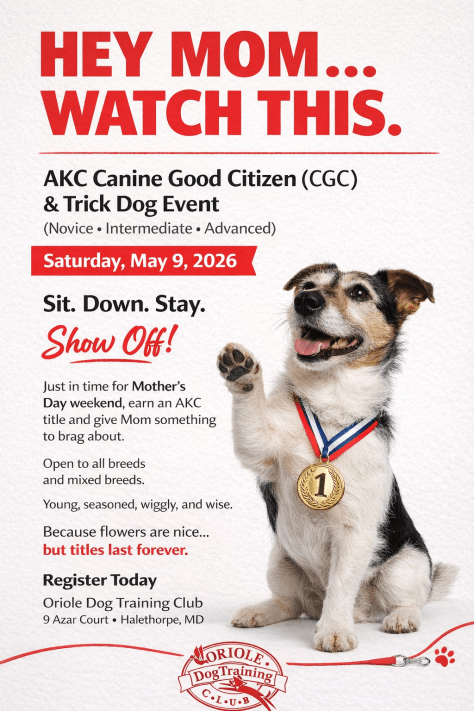 Come join us, show off your dog’s skills and earn your AKC titles!