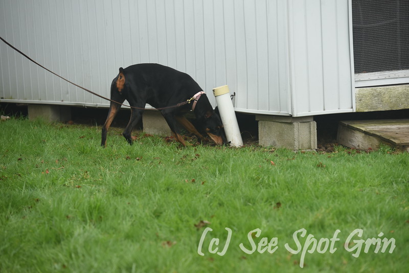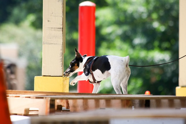 Club member Betty Gardner and Smooth Fox Terrier Caijan perform Exterior and Vehicle Searches at a K9 Nose Work Trial held in the fall of 2014.