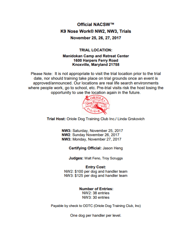 tmp_NACSW_NW2_NW3_Nov_2017 August 10, 2017 650 × 840 NACSW K9 Nose Work® Event Information Page Like Loading...