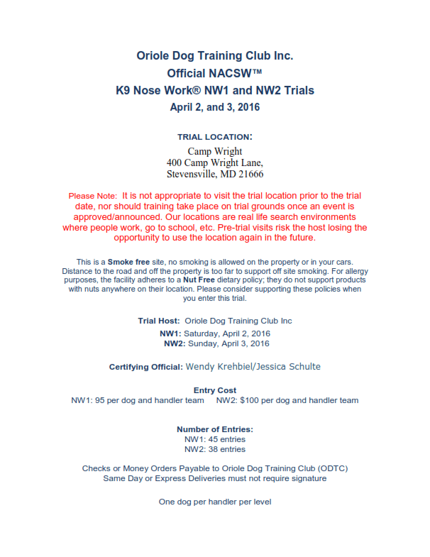NACSW K9 Nose Work