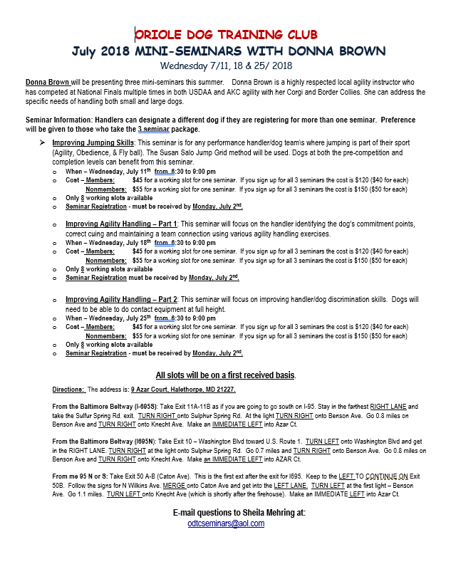 Obedience Seminars & Workshops