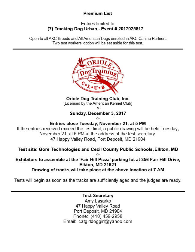 Oriole Dog Training Club