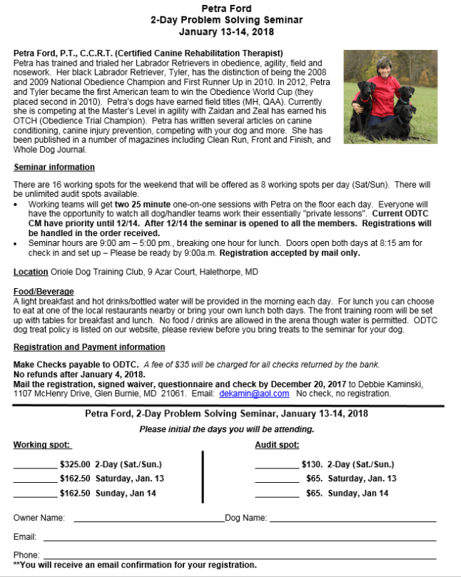 Obedience Seminars & Workshops